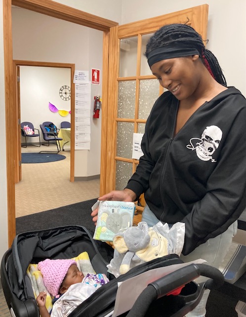 The power of paper, pictures, colors, and words to call forth positive emotions, promote family bonding, and support educational success right from birth – and even prenatally – was evident in the joy with which the moms looked through the array of items before selecting their favorites. Exclamations like “This is great. This is amazing, and I love it!” were often heard. One of the moms asked excitedly “When are you coming back,” and, “Can I volunteer with you?”